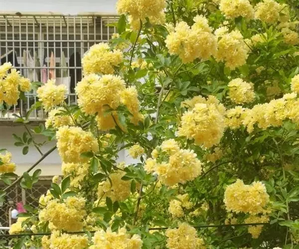 黄木香花 Rehd.)是蔷薇科、蔷薇属植物,为木香花的变型品种,攀缘小灌木,高可达6米。小叶3-5枚,…