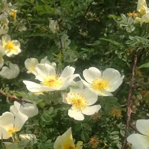 白蔷薇:直立灌木,高约2米;小枝有不等钩状皮刺,有时混有刺毛。小叶通常5,稀7,宽椭圆形或卵形,…