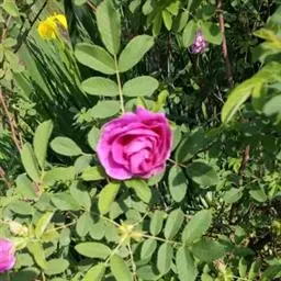 玫瑰:蔷薇科、蔷薇属的灌木;株高达2米;茎粗壮,丛生;小枝密生线毛,针刺和腺毛,有皮刺,淡黄色,…