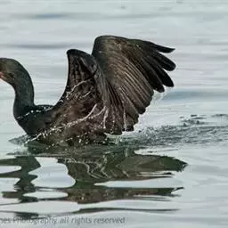 双冠鸬鹚(学名:Phalacrocorax auritus)是鹈形目鸬鹚科的鸟类,鸟嘴强而长,上嘴两侧有沟,嘴端有钩,适于啄鱼;下嘴基部有喉囊;鼻孔小,在成鸟完全隐闭;眼先裸出;颈细长;两翅长度适中,缺第五枚次级飞羽;尾圆而硬直,有12-14枚尾羽;脚位于体的后部;跗蹠短而无羽;趾扁,后趾长,有蹼相连。潜水后羽毛湿透,需张开双翅在阳光下晒干后才能飞翔。