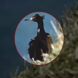 双冠鸬鹚是一种海洋性水鸟,体长 74-91厘米,双翼展开宽132-137厘米,体重1.7–2.1千克。全身乌黑发亮的羽毛泛出绿色光泽;灰色的翅膀是鳞片状黑褐色羽毛;有一长尾巴;最显着特征是嘴角处裸露的桔红色皮肤分外鲜明。繁殖期头上长出两簇柱状的冠羽。