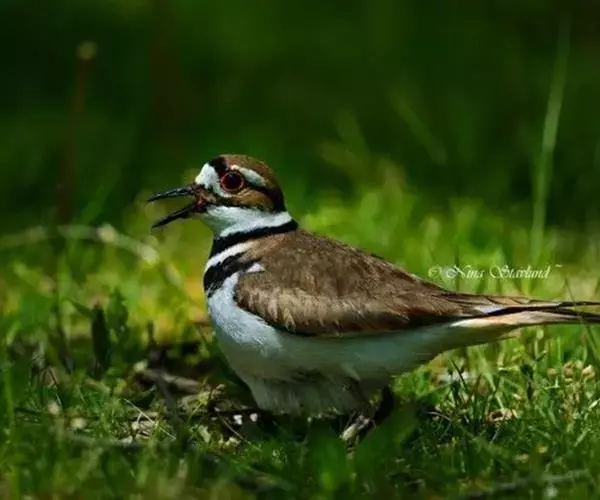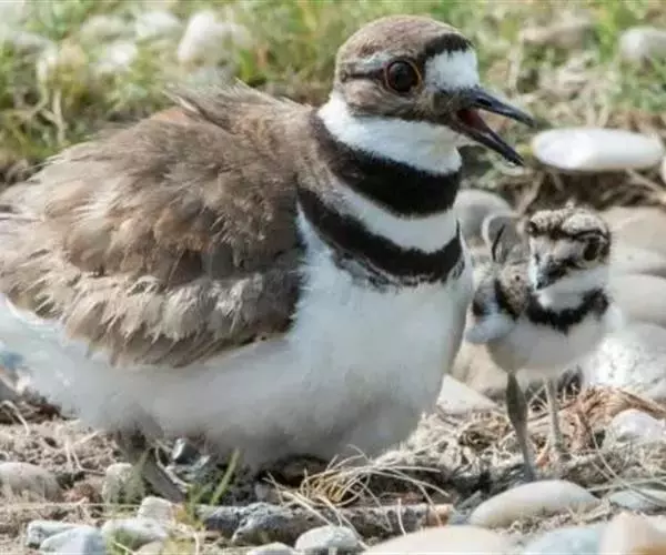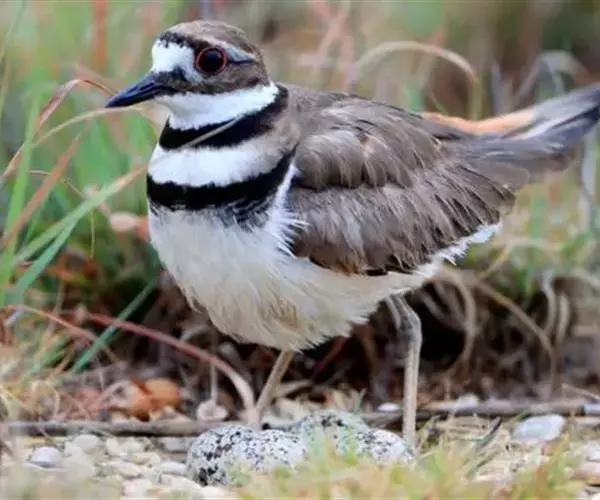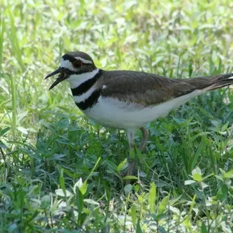 双领鸻(学名:Charadrius vociferus)属中小型涉禽。背褐色,腹白色,胸有两条黑色带。飞行时显现出黑白相间的翅和褐色的尾。跗蹠修长,胫下部亦裸出。中趾最长,趾间具蹼或不具蹼,后趾形小或退化。翅形尖长,第1枚初级飞羽退化,形狭窄,甚短小;第2枚初级飞羽较第3枚长或者等长。三级飞羽特长。尾形短圆,尾羽12枚。是迁徙性鸟类,具有极强的飞行能力。通常沿海岸线、河道迁徙。生活环境多与湿地有关,离不开水。栖息于海滨、岛屿、河滩、湖泊、池塘、沼泽、水田、盐湖等湿地之中。分布于美洲地区。
