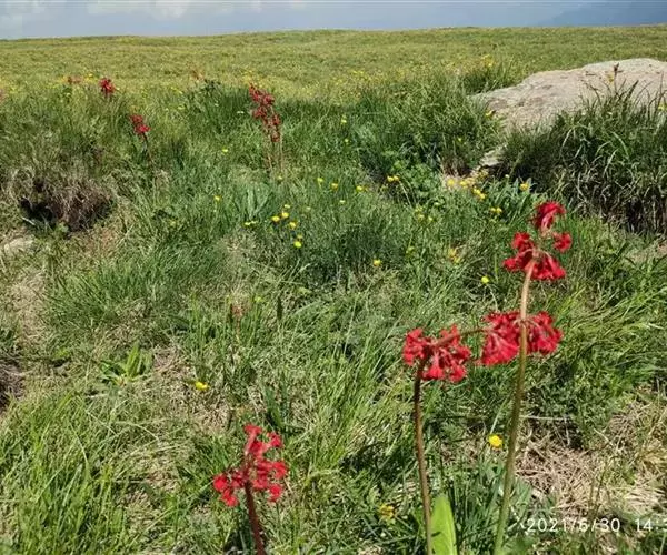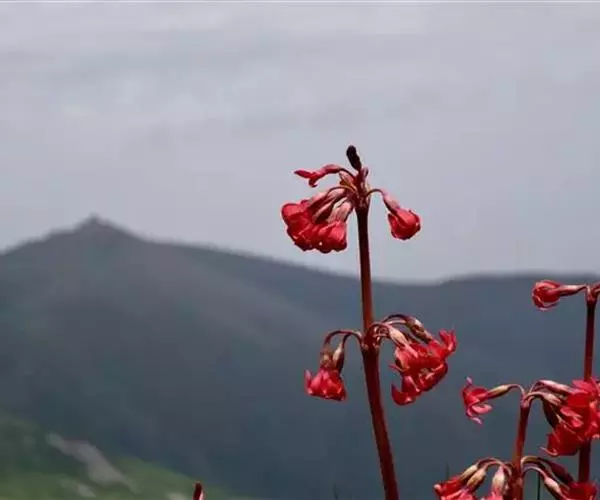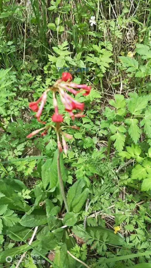 花葶稍粗壮,高20-45(70)厘米;伞形花序1-3轮,几每轮6-10(20)花;苞片披针形,长3 7毫米,先端渐尖,基部互相连合;花梗长l-3(4)厘米;花萼狭钟状,长6-10毫米,分裂达全长的1/3,裂片三角形,边缘具腺状小缘毛;花冠暗朱红色,冠筒管状,裂片狭矩圆形,长4-8毫米,宽2.5-3毫米,全缘,通常反折贴于冠筒上;长花柱花:冠筒长11-13毫米,雄蕊着生于冠筒中下部,距基部4-5毫米,花柱长近达冠筒口;短花柱花:冠筒长4-19毫米,雄蕊着生于冠筒上部,花药顶端距筒口约2毫米,花柱长3 4毫米。蒴果稍长于花萼。花期5-6月,果期7月。