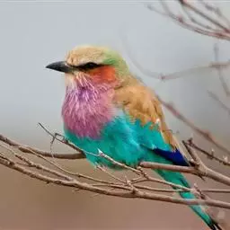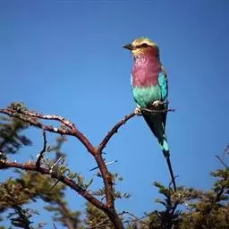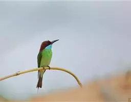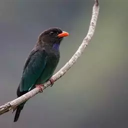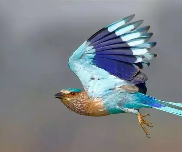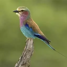 棕胸佛法僧(学名:Coracias benghalensis)中型鸟类,体长32~35厘米。黑色的嘴细而下弯。头顶暗蓝色,喉、上背及部分飞羽淡紫;上胸葡萄紫色,具蓝色中央纹,下胸葡萄褐色,腹和尾下覆羽淡蓝色。腰蓝紫色,尾上覆羽辉蓝色。背部及中央尾羽暗绿。飞行时两翼及尾部的鲜艳蓝色非常显眼。停栖时此鸟看似暗淡,但近看其头顶、尾覆羽及两翼为华美的青蓝色组合。