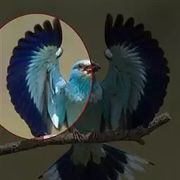 与相似种蓝胸佛法僧的区别在于头及胸部蓝色较少;与三宝鸟区别在于嘴黑色。