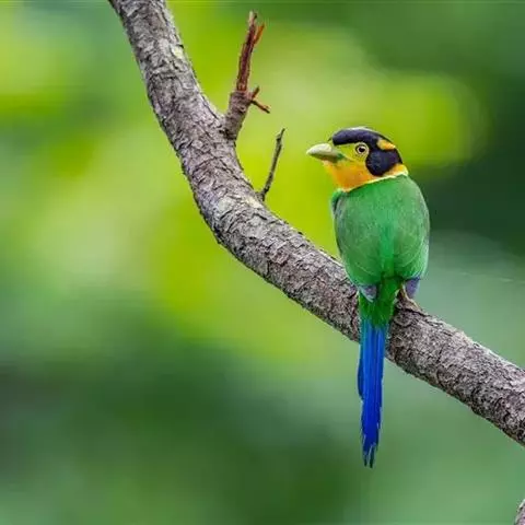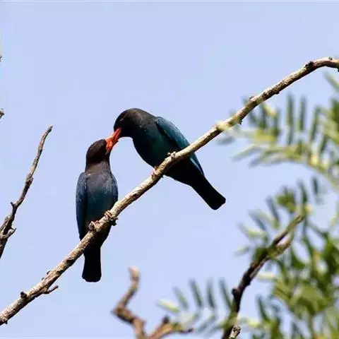 三宝鸟,是佛法僧目佛法僧科三宝鸟属中小型攀禽。成鸟通体为富有光泽的墨蓝绿色,…