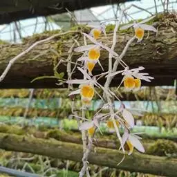 美花石斛是兰科石斛属多年生草本。茎柔弱,斜立或下垂,呈细圆柱形,有时分枝;叶互生于茎上,…
