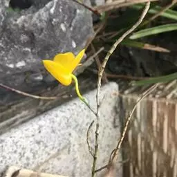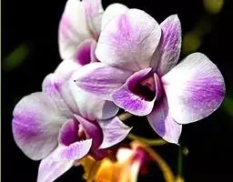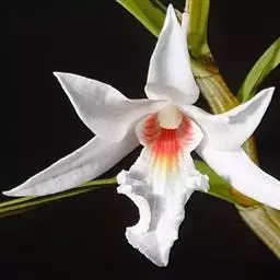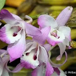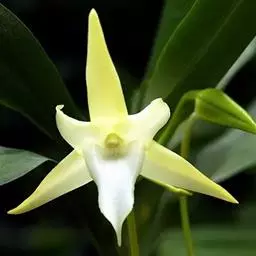 黑毛石斛(学名:Dendrobium williamsonii Day et Rchb. f.):茎圆柱形,有时肿大呈纺锤形,不分枝,具数节。叶数枚,通常互生于茎的上部,革质,长圆形。总状花序出自具叶的茎端,具1-2朵花;花开展,萼片和花瓣淡黄色或白色,相似,近等大,狭卵状长圆形,长2.5-3.4厘米,宽6-9毫米,先端渐尖,具5条脉;唇瓣淡黄色或白色,带橘红色的唇盘,长约2.5厘米,3裂。花期4-5月。