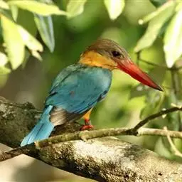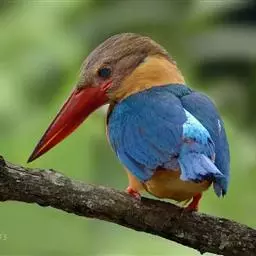 鹳嘴翡翠:体长33-37厘米。体重140-200克。共有13个亚种,体型大,嘴形巨大、侧扁,似鹳嘴…