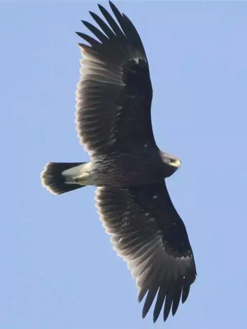 白腹鹞中型猛禽,体长50~60厘米。雄鸟头顶至上背白色,具宽阔的黑褐色纵纹。上体黑褐色,…