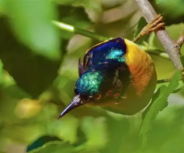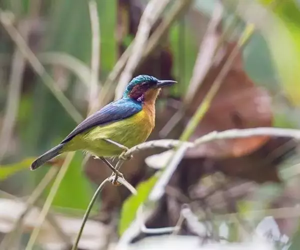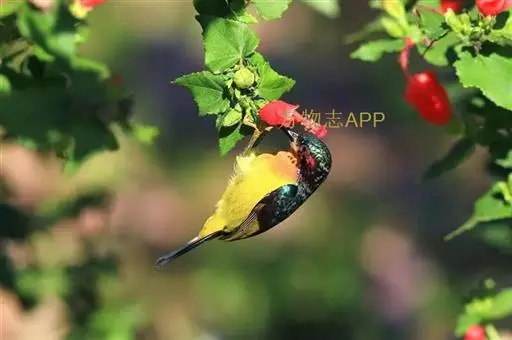 体小(10厘米)而色彩艳丽的太阳鸟。