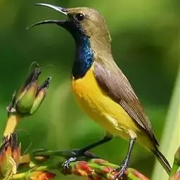 黑胸太阳鸟:小型鸟类,体长9-15厘米。嘴细长而向下曲。雄鸟中央尾羽特长,尾呈楔形,…