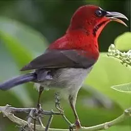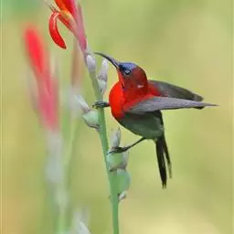 火尾太阳鸟为太阳鸟科太阳鸟属的鸟类。体长20厘米,色彩艳丽。雄鸟红色,具形长的艳猩红色中央尾羽。…