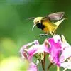 叉尾太阳鸟,雀形目太阳鸟科太阳鸟属留鸟;为小型鸟类,雄鸟头顶辉蓝绿色,上体橄榄绿色,腰明黄色,…