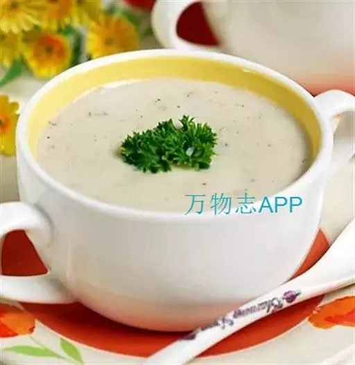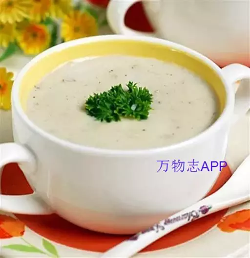 特点:西式餐汤,营养丰富,开胃美观,也可做早餐配烤面包。