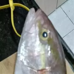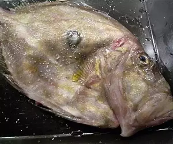 制法:把马面鱼宰杀干净,切去头部眼睛以上部分并剥皮洗净,然后用精盐腌味,要把马面鱼用精盐整个盖起来;约5小时后取出洗净,加料酒、生姜片、小葱装盘进蒸箱蒸约10分钟熟透后取出;晾凉后下平底锅煎至两面金黄色时起锅,配上柠檬汁上桌即可。