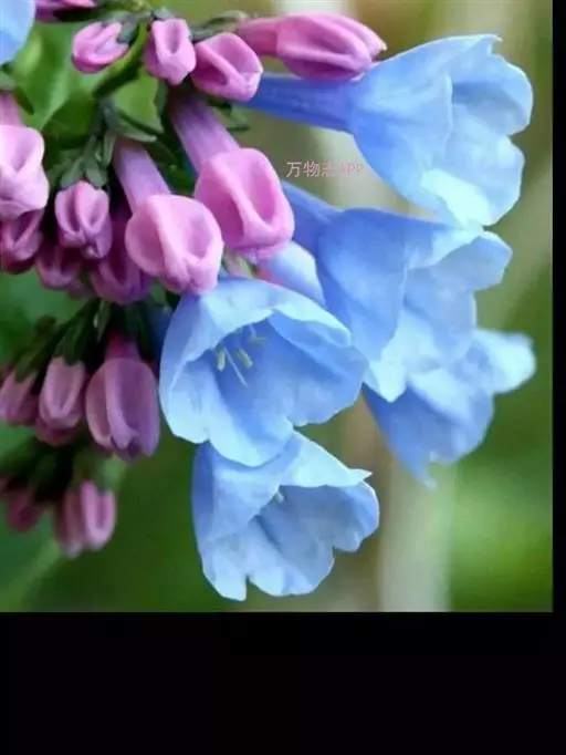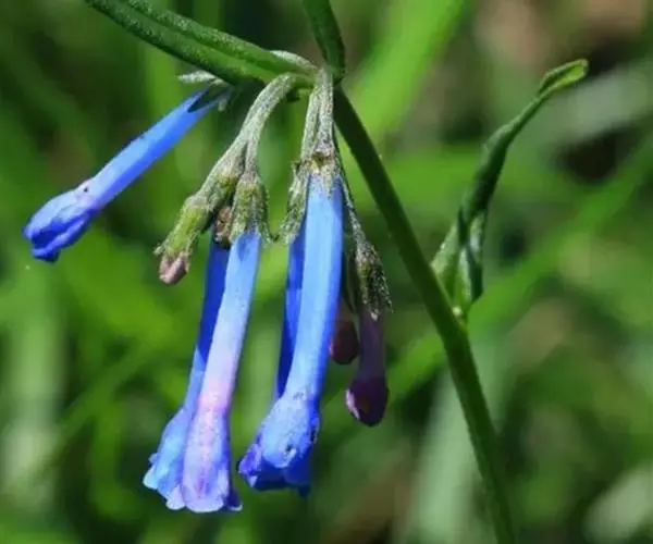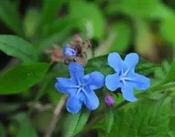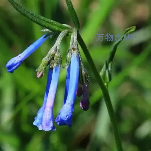 花冠蓝色,长1.2-2.2厘米,无毛,筒部直,长约为檐部的三倍半,直径2-3.5毫米,檐部比筒部稍宽,5浅裂,裂片近半圆形,稍开展,高约2毫米,全缘,喉部附属物半圆形,高约0.5毫米,平滑;雄蕊着生于喉部附属物之间,花丝长约2毫米,花药线状长圆形,长约2.5毫米;花柱与花冠近等长,柱头盘状。