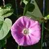 番薯 Lam.),多年生草质藤本植物,具有乳汁;其块根为白、红或黄色;茎生不定根;叶呈宽卵形或卵状心形,叶色有浓绿、黄绿、紫绿等,前端渐尖,基部呈心形或近平截;花冠为粉红、白、淡紫或紫色,呈钟状或漏斗状,无毛;蒴果呈卵形或扁圆形;由于番薯是于异花授粉,自花授粉常不结实,所以有时只见开花不见结果。 种子1-4粒,通常2粒,无毛。番薯原产于南美洲及大、小安的列斯群岛,现已广泛栽培在全世界的热带、亚热带地区,但在一些较北的地区如黑龙江省也已栽种成功,中国大多数地区都普遍栽培。番薯适应性强,喜温暖多光而不耐霜冻,抗旱耐碱,适种于肥沃而排水良好的砂质壤土,是一种易于保收的作物。番薯是一种高产而适应性强的粮食作物,在中国南方,有“一造番薯半年粮”的说法, 与工农业生产和人民生活关系密切;块根除作主粮外,也是食品加工、淀粉和酒精制造工业的重要原料;根、茎、叶可作