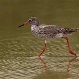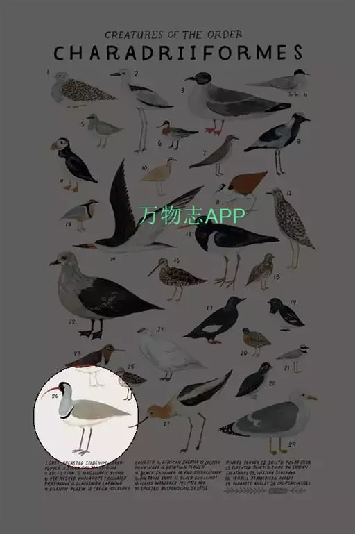 红脚鹬:体长28厘米,上体褐灰,下体白色,胸具褐色纵纹。飞行时腰部白色明显,次级飞羽具明显白色外缘。…