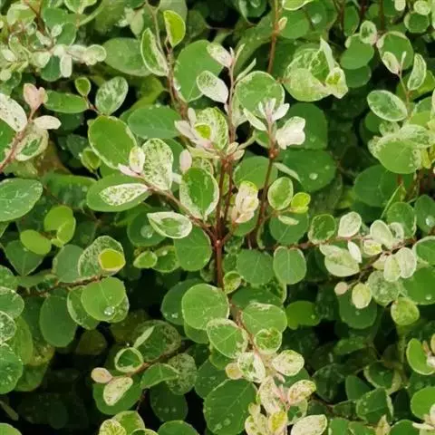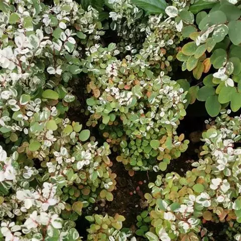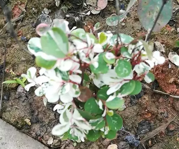 常绿小灌木。株高约50~120厘米,枝条暗红色 。叶互生,圆形或阔卵形,全缘。白色或有白色斑纹。嫩时白色,成熟时绿色带有白斑,老叶绿色。花小,花有红色、橙色、黄白等色,花期、夏秋两季。