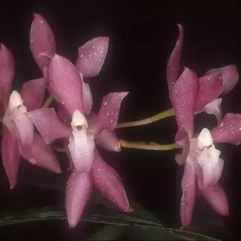 重唇石斛:茎下垂,圆柱形或有时从基部上方逐渐变粗,具少数至多数节。叶薄革质,狭长圆形或长圆状披针形。…