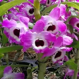 通常选用四壁多孔的塑料或陶瓷花盆,用碳根、泥炭藓、树皮块、木炭块等作盆栽材料。根据兰苗的大小,选择不同规格的花盆,但不宜用大盆栽小苗口上述栽好材料在使用前必需在清水中浸泡1天以上备用。盆底要多垫大瓦片或碎砖块,深度至盆底约1/3处,然后将兰苗放于盆中央,并在一旁插一细竹竿以固定兰苗,再填入其他栽培材料,注意根与根之间用材料隔开。