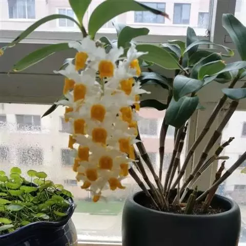 美花石斛是兰科石斛属多年生草本。茎柔弱,斜立或下垂,呈细圆柱形,有时分枝;叶互生于茎上,…