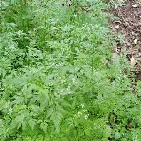 芫荽植株地上部均可染病,但主要为害叶片、茎和花轴。先在近地面处叶片上发病,初现白色霉点,后在霉点上扩展为白色粉斑,生于叶两面;茎染病多发生在节部,条件适宜时,白粉状物迅速布满花器和果实,多由植株下部向上扩展,后期菌丝由白色转为淡褐色,病部产生许多黑色小粒点.即病原菌的子囊壳。
