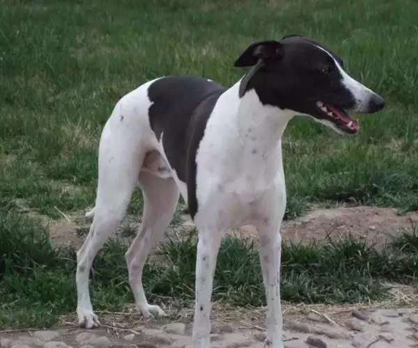 细长的头部,头顶平坦,朝鼻尖逐渐变细。小而薄的耳朵向下折叠,呈玫瑰状。暗色的眼睛呈椭圆形,两眼间距分得较开。放光的眼神中显示出不平凡的机敏。胸部厚实,背部肌肉结实,腰部强壮。尾巴长,尾端细,略微弯曲。前腿笔直,两腿之间的距离不是很大,后肢脚大,大腿肌肉非常发达。脚尖宽,肉趾厚实 .