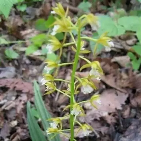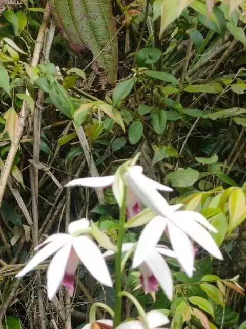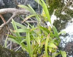 长叶山兰:假鳞茎椭圆形至近球形,有2-3节,外被撕裂成纤维状的鞘。叶2枚,偶有1枚,生于假鳞茎顶端…
