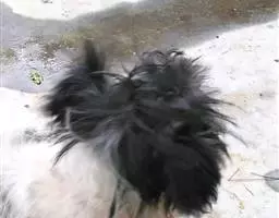 尾巴长度适中,能延伸到飞节或更低。当他休息时,尾巴下垂,但尾巴尖向上扭曲或呈旋涡是这个品种的特点。当狗在运动时或兴奋时,尾巴欢快地举起,但不应该高过背平面。