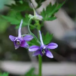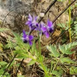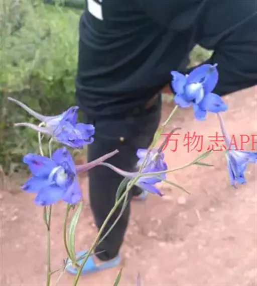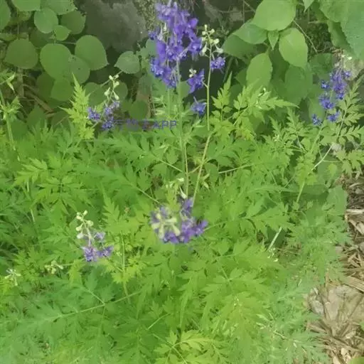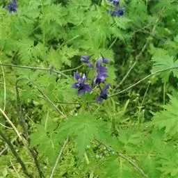 房山翠雀(变种):与翠雀的区别:叶的小裂片三角形至狭披针形;花序伞房状,有少数花。产北京房山县。生海拔400-600米低山山谷草地。