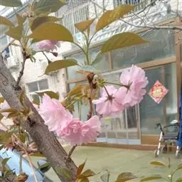 撒金碧桃 Voss)是李亚科,桃属植物桃的变种,叶为窄椭圆形至披针形,长15厘米,宽4厘米,先端成…