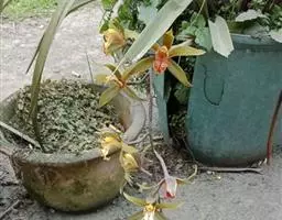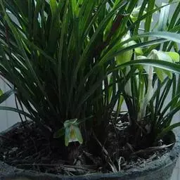 上盆(或翻盆)时间一般在春季3-4月或秋季10-11月。花盆以口小、盆深、底孔大的为佳。新从山上挖来的野生苗需理植于瓦盆(泥盆)中,这样兰花泥易干,通气性好.容易发根;2-3年后方可换人紫砂盆或瓷盆。兰花种植(在盆中)的方法与一般花卉不同,尤其是名种兰花,翻种移盆必须洗根。方法足将根浸入清水中,用旧牙刷或毛笔轻轻洗刷,切勿用力过大伤根;用剪刀将残叶、黄叶、断裂根、发黑腐烂根剪去,注意勿伤幼芽。然后将处理好的植株放在阴凉通风处晾干,待根部发白并显细小皱纹柔软时,再植入盆中。