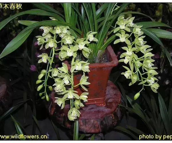 建兰 Sw.):地生植物;假鳞茎卵球形,包藏于叶基之内。叶2-6枚,带形,有光泽,长30-60厘米,…