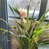准备好兰盆及植料后,将兰株倒拿(根在上,叶在下)放于水龙头下以慢水冲洗,但水压切忌过强,以免伤兰根及叶子。用拇指和食指抓住兰头,小指抵住盆缘,用竹筷将根固定,当放入盆内时,尽量不要让根接触到盆壁。将豆粒大的混合石砾倒入盆底至三分之一处。然后倒入中粒植料至五分之四处,填实和尽量不要留下空间。将竹筷拔出,并摇实盆中植料。填实植料后,再用大粒植料埴入至距盆缘1.5厘米处。最后再倒入豆粒大植料,以将假鳞茎全部埋入土中为度,然后充分摇实。用压土工具轻压植料,并将表面弄平。种植完毕后,植料在盆中以中央稍高为好。