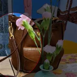 花瓣略短于萼片,狭椭圆形;唇瓣近卵形,长1.3-2厘米,3裂,基部多少囊状,上面有小乳突或微柔毛;侧裂片超出蕊柱与药帽之上,中裂片外弯;唇盘上有2条纵褶片,略弯曲,中部变窄或有时断开,末端和基部膨大;蕊柱长1-1.2厘米,略向前弧曲;花粉团2个。