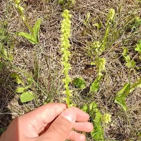 黄花白及:草本植物,植株高25-55厘米。假鳞茎扁斜卵形,较大,上面具荸荠似的环带,富粘性。茎较粗壮,…