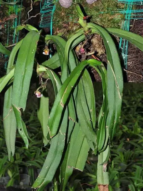 云南石仙桃:根状茎匍匐、分枝,粗4-6毫米,密被箨状鞘,通常相距1-3厘米生假鳞茎;假鳞茎近圆柱状…