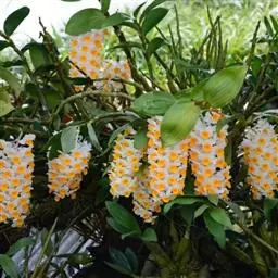 报春石斛,是兰科石斛属植物,茎下垂,厚肉质,圆柱形,不分枝,具多数节;叶纸质互生于整个茎上,…