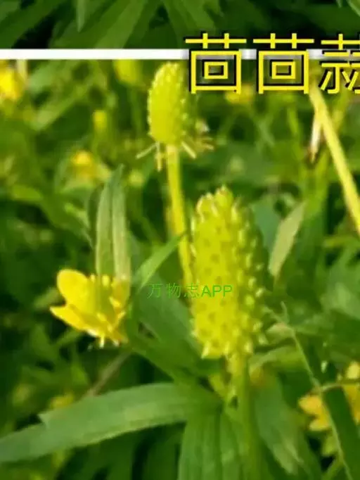 茴茴蒜(学名:Ranunculus chinensis Bunge)是毛茛科,毛茛属一年生草本植物。须根多数簇生。茎直立粗壮,高可达70厘米,分枝多,与叶柄均密生开展的淡黄色糙毛。叶片宽卵形至三角形,裂片倒披针状楔形,顶端尖,两面伏生糙毛, 侧生小叶柄较短,生开展的糙毛。花序有较多疏生的花,花梗贴生糙毛;萼片狭卵形,花瓣宽卵圆形,与萼片近等长或稍长,黄色或上面白色,花托在果期显著伸长,圆柱形,聚合果长圆形,瘦果扁平,5月至9月开花结果。