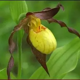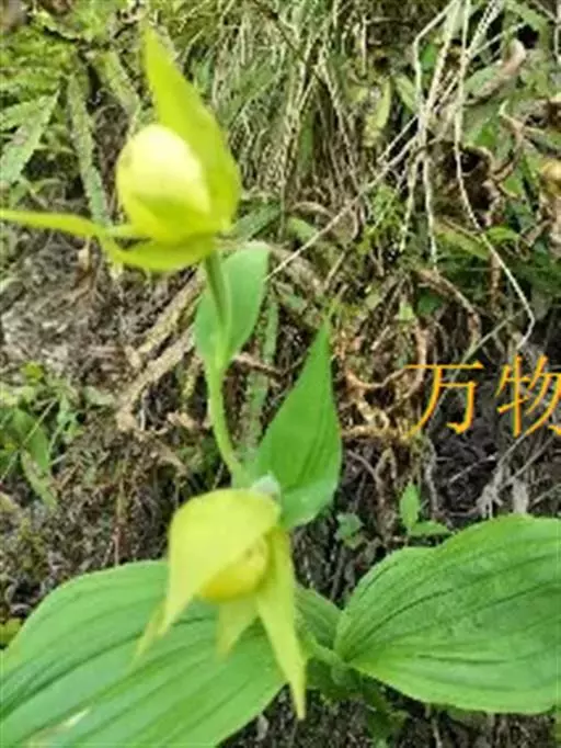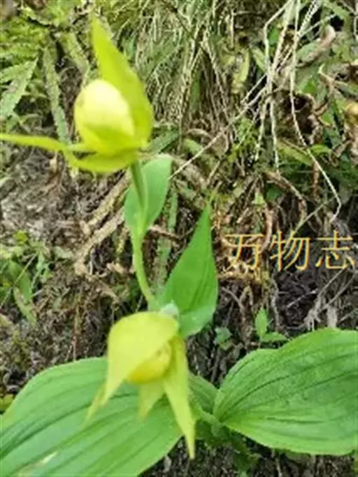 黄花杓兰(学名:Cypripedium flavum P. F. Hunt & Summerh.):植株通常高30-50厘米,具粗短的根状茎。茎直立,密被短柔毛,基部具数枚鞘,鞘上方具3-6枚叶。叶片椭圆形至椭圆状披针形。花序顶生,通常具1花,罕有2花;花黄色,有时有红色晕,唇瓣上偶见栗色斑点;花瓣长圆形至长圆状披针形,稍斜歪,长2.5-3.5厘米,宽1-1.5厘米,先端钝,并有不明显的齿,内表面基部具短柔毛,边缘有细缘毛;唇瓣深囊状,椭圆形。蒴果狭倒卵形,被毛。花果期6-9月。