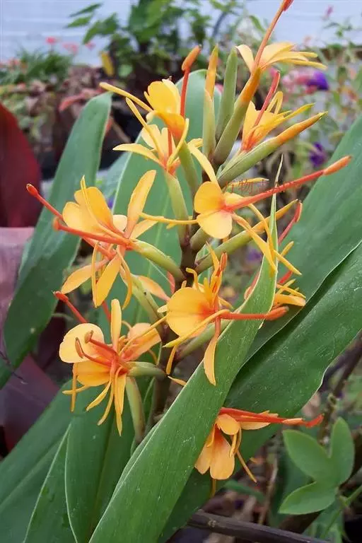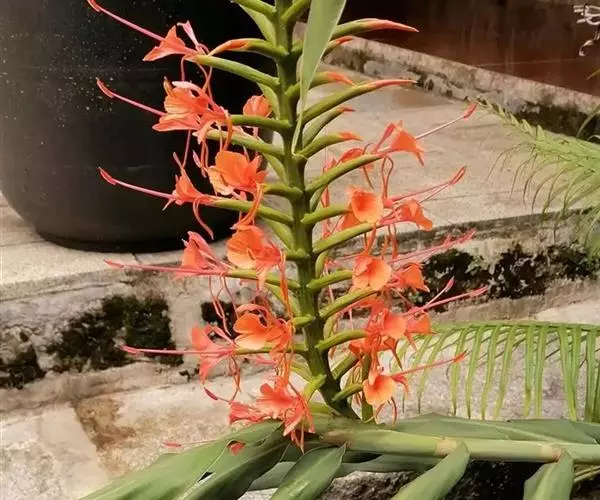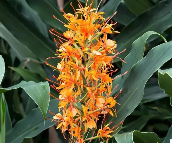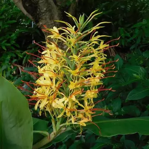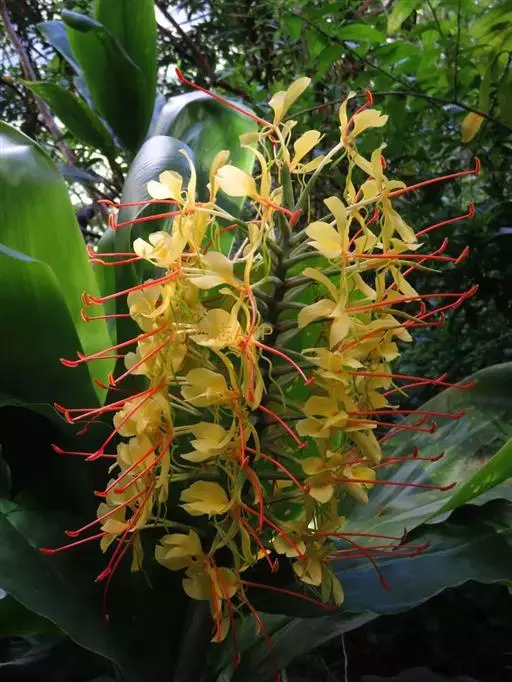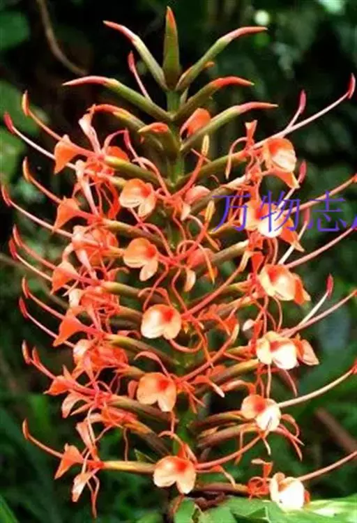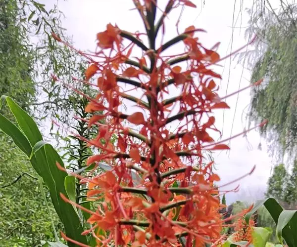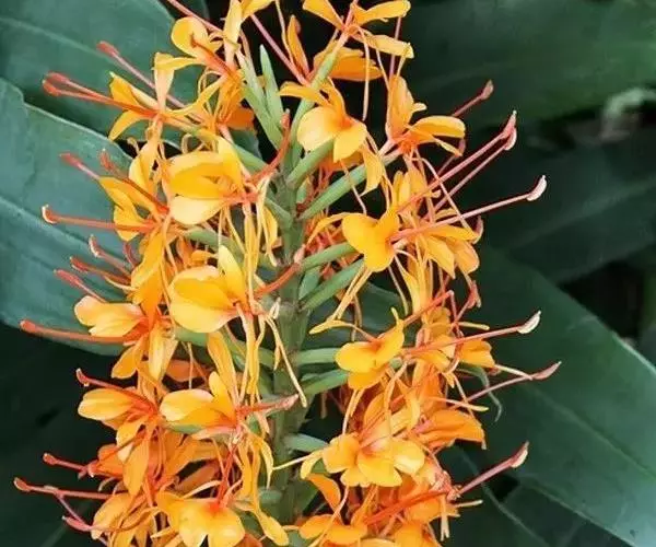 红姜花的整个花序婷婷玉立,火红如炬,圆柱形的花柱从四面八方开出朵朵红花,花期长,极为美丽。在欧美已选育出了许多园艺品种。该种花卉粗生易管,稍加驯化即可进入园林观赏。