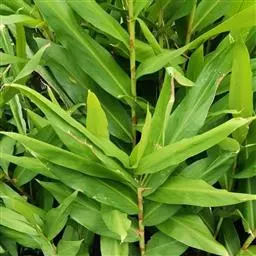 陆生或附生草本,具块状根茎。 茎高1.5-2米。叶片狭线形,长25-50厘米,宽3-5厘米,顶端尾尖,基部渐狭或近圆形,两面均无毛;无柄;叶舌长1.2-2.5厘米。