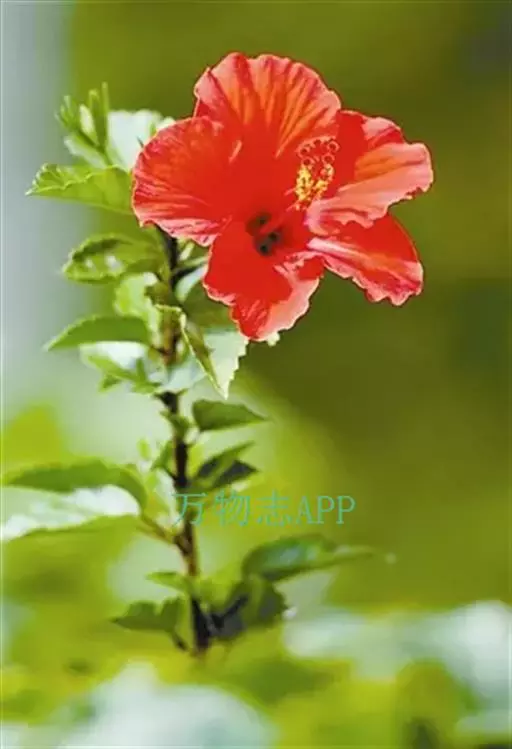 扶桑为常绿大灌木。径直立而多分枝,高可达 6 米 。盆栽者一般高 1 -3 米 。叶互生,阔卵形至狭卵形,长 7 — 10 厘米 ,具 3 主脉,先端突尖或渐尖,叶组有粗锯齿或缺刻,基部近全缘,秃净或背脉有少许疏毛,形拟桑叶。花大,有下垂或直上之柄,单生于上部叶腋间,有单瓣、重瓣之分:单瓣者漏斗形,通常玫瑰红色,直径约 10 厘米 ,雄蕊筒及柱头伸出于花冠之外;重瓣者非漏斗形,呈红、黄、粉等色,花径 10 -17 厘米 ,雄蕊筒及柱头不一定突出花冠外。蒴果卵圆形,光滑,有喙。花期全年,夏秋最盛。
