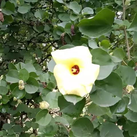 黄槿 Fryxell)锦葵科黄槿属常绿灌木或小乔木。小枝无毛或疏被星状绒毛;叶近圆形或宽卵形,…