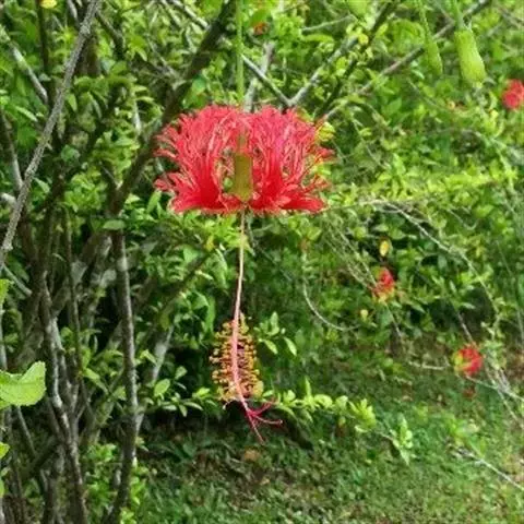 吊灯扶桑 Hook. f.)为锦葵科木槿属的常绿灌木。高达3米;小枝常下垂;叶椭圆形或长圆形,…