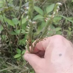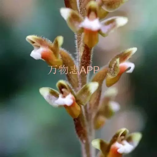 钳唇兰(学名:Erythrodes blumei (Lindl.) Schltr.):植株高18-60厘米。根状茎伸长,匍匐,具节,节上生根。茎直立,圆柱形,绿色,下部具3-6枚叶。叶片卵形、椭圆形或卵状披针形,有时稍歪斜,上面暗绿色,背面淡绿色,具3条明显的主脉,具柄;总状花序顶生,具多数密生的花,长5-10厘米;花较小,萼片带红褐色或褐绿色,背面被短柔毛,中萼片直立,凹陷,长椭圆形,长4-6毫米,宽1.5-2.5毫米,先端稍钝;侧萼片张开,偏斜的椭圆形或卵状椭圆形。花期4-5月。