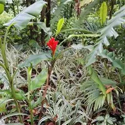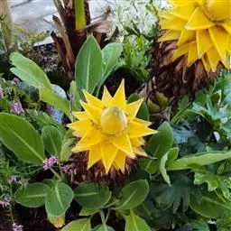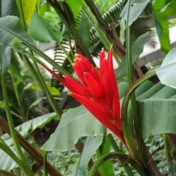 紫苞芭蕉形如一枝亭亭玉立、含苞待放的荷花,但却开在高高的芭蕉树上,这就是紫苞芭蕉。