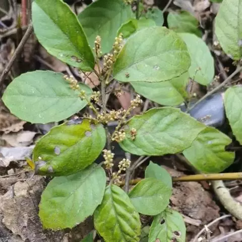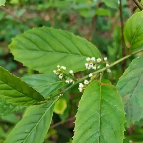 总状花序或圆锥花序,腋生,长2-4厘米,具2-3分枝(为圆锥花序时),被长硬毛和短柔毛;苞片小,披针形或钻形,较花梗短,花梗长约2毫米,小苞片披针形或近卵形,均被长硬毛和短柔毛;花长约2毫米,萼片广卵形,较萼管长或几等长,具脉状腺条纹,被长硬毛,以后无毛;花冠白色,钟形,长约为花萼的1倍,无毛,具脉状腺条纹;裂片与花冠管等长,广卵形,边缘具不整齐的微波状细齿;雄蕊在雌花中退化,在雄花中着生于花冠管上部,内藏;花丝较花药略长;花药广卵形或近肾形,无腺点;雌蕊较雄蕊略短,花柱短且厚,柱头4裂。